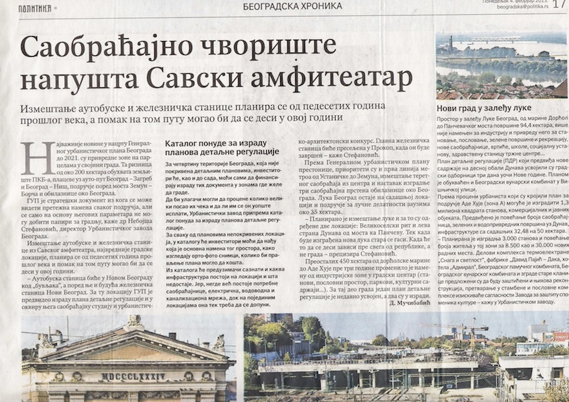 Planirano je da autobuska stanica bude u Novom Beogradu a železnička stanica bi trebalo da bude pored autobuske.