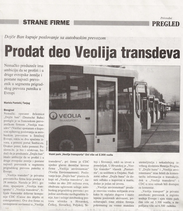 Nemački Dojče Ban je kupio deo poslovanja sa autobuskim prevozom firme Veolija transdev