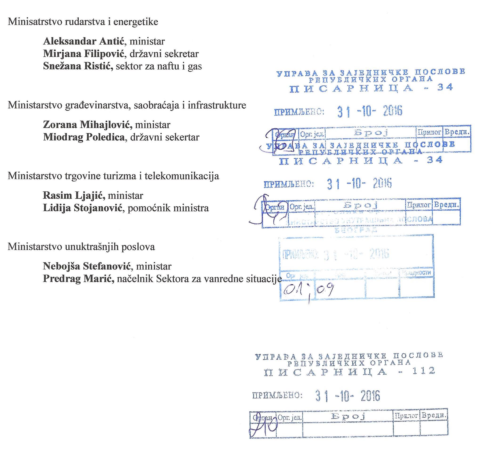 Ministarstvu građevinarstva, saobraćaja i infrastrukture,