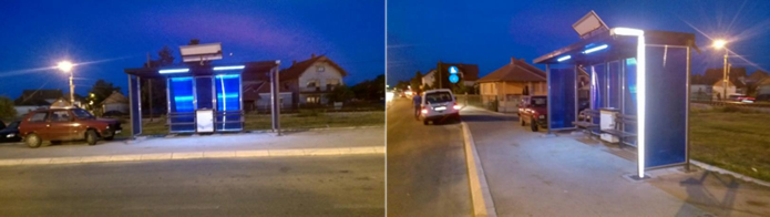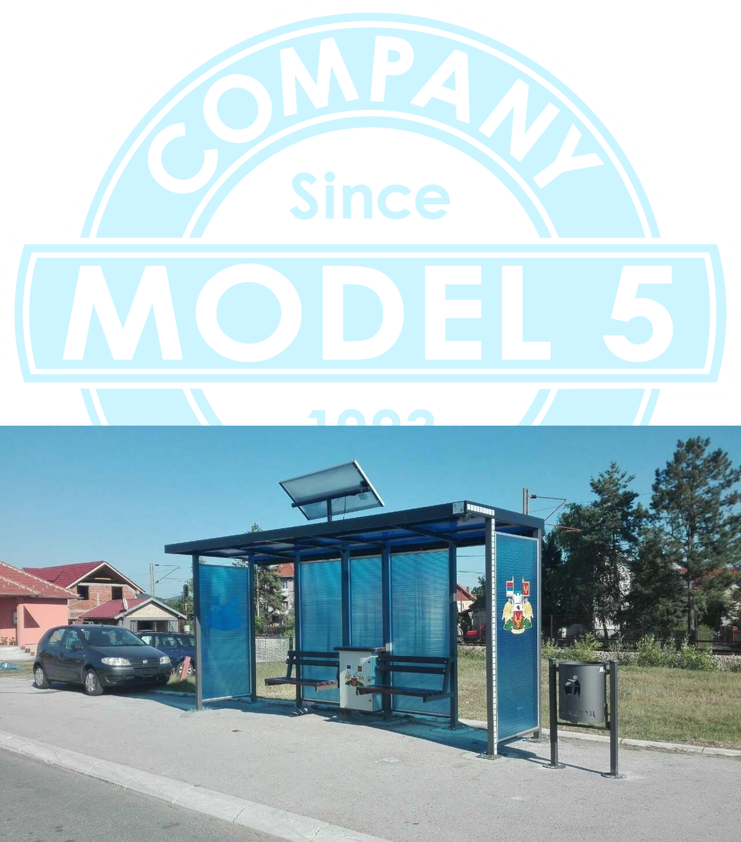 Nabavka transport i montaža pametnih poluzatvorenih autobuskih stajališta na solarnu energiju na lokaciji koju odredi investitor. Stajalište mora da se napaja isključivo solarnom energijom koja će se skladištiti u bateriji, a potom koristiti samo za napajanje LED rasvetnog tela, punjača za mobilne telefone i WiFi rutera. Autobusko stajalište mora da poseduje klupu i kantu za otpatke. Sa leve i desne strane od centralnog dela simetrično se ugrađuje panelna ispuna od leksana, a zatim ostavljaju otvori (istih dimenzija), za prolaz putnika. Sa obe bočne strane se takođe nalazi laka panelna ispuna od leksana. Krovna konstrukcija je izvedena iz tri dela, gde je osnovni (središnji) deo solarni panel – koji čini jedinstvenu celinu čvrsto povezanu sa centralnim delom, a leva i desna strana je simetrično izgrađena konstrukcija od lakih čeličnih profila i lake panelne ispune od leksana. U središnjem delu stajališta sa unutrašnje strane se nalazi klupa za sedenje kod koje je konstrukcija izvedena od tankih čeličnih profila, a sedalni deo od profilisanih drvenih gredica. Dužina nadstešnice je minimum 4,5m + širina stubova, visina je 2,3 m u najnižoj tački koja zavisi od nagiba terena, a širina je minimum 1,5m. Centralni deo koji se nalazi u sredini autobuskog stajališta je izveden od kutijastih profila kao osnove, sa opšivkom lima, minimalne debljine 3mm. Sa gornje strane centralnog dela/ konzolna greda nalazi se solarni panel.