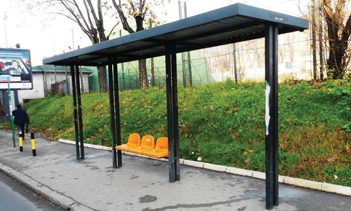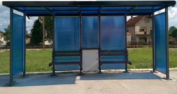 Konstrukciju nadstrešnice čine farbani čelični profili – stubovi, krovna konstrukcija i dodatni profili za ukrućenje i nošenje panela ispune, kao i ispis STAJALIŠTE (naziv i bus linije). Profili nosećih stubova su kutijastog preseka, dimenzija 70X70x4mm.