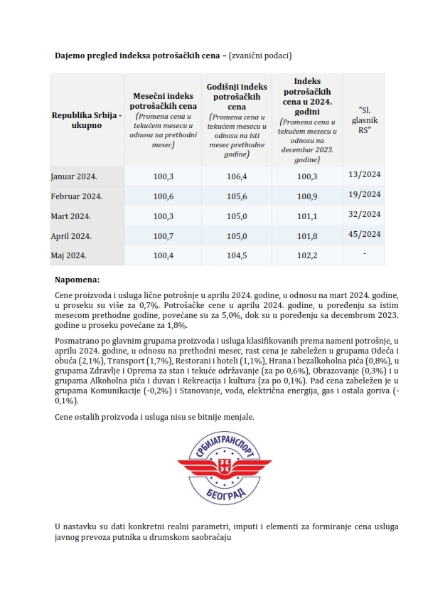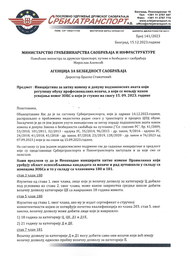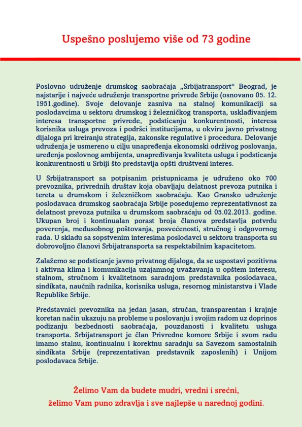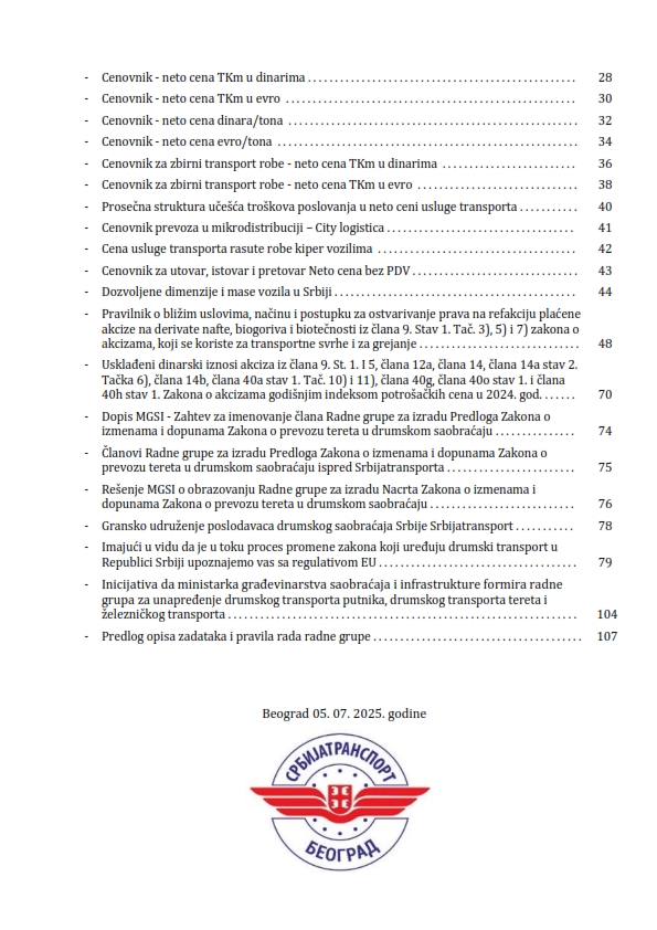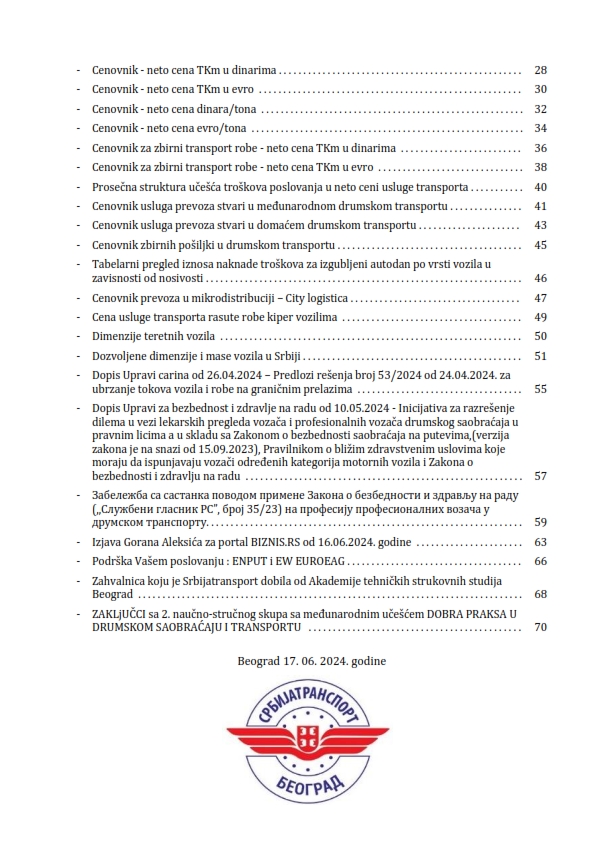 najvažiji stavovi, činjenice preporuke i principi za prevoznike i kreatore politike