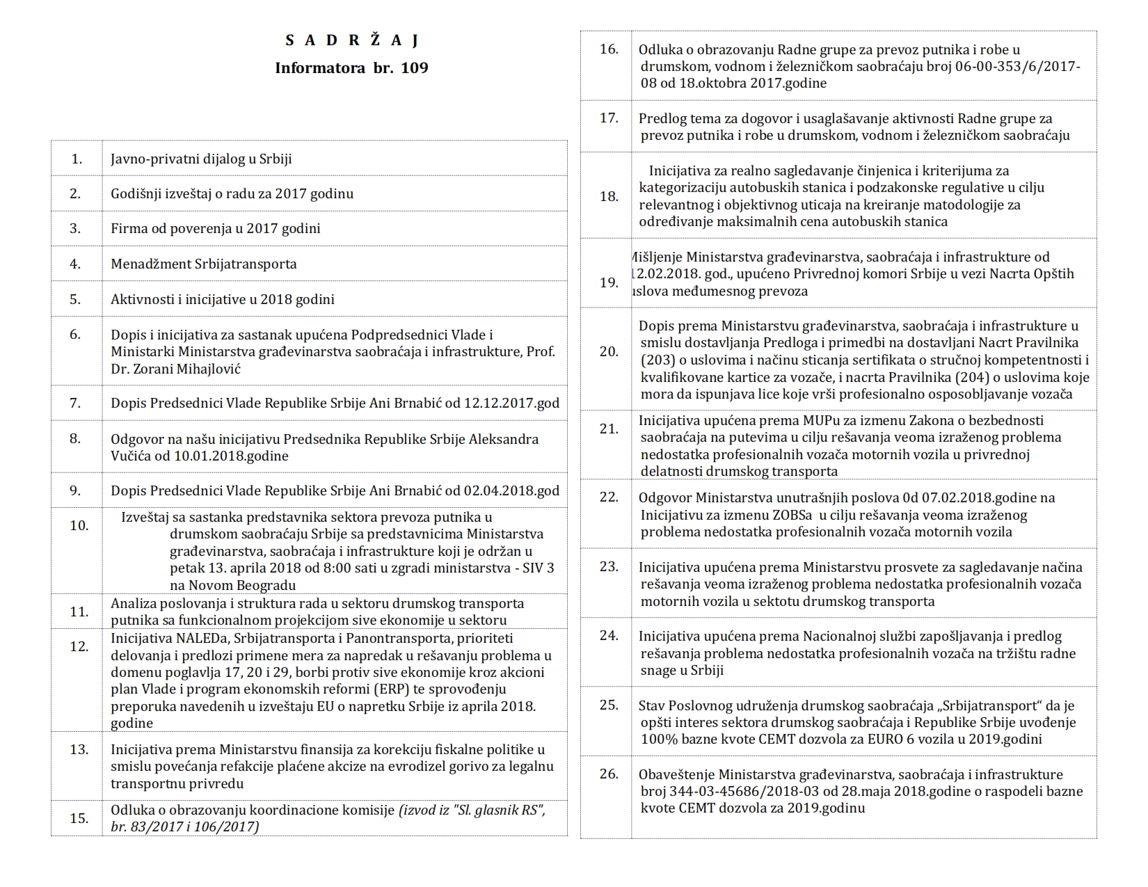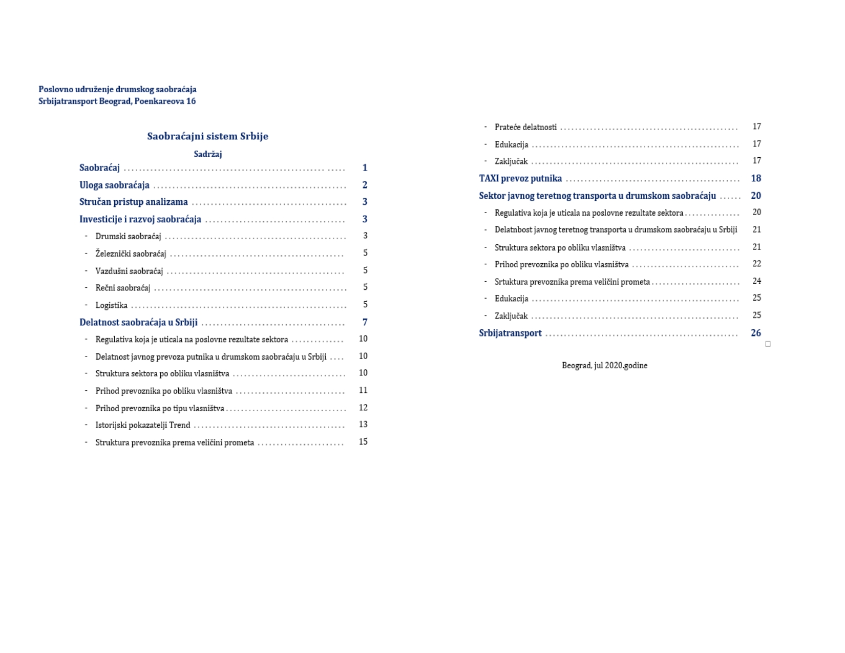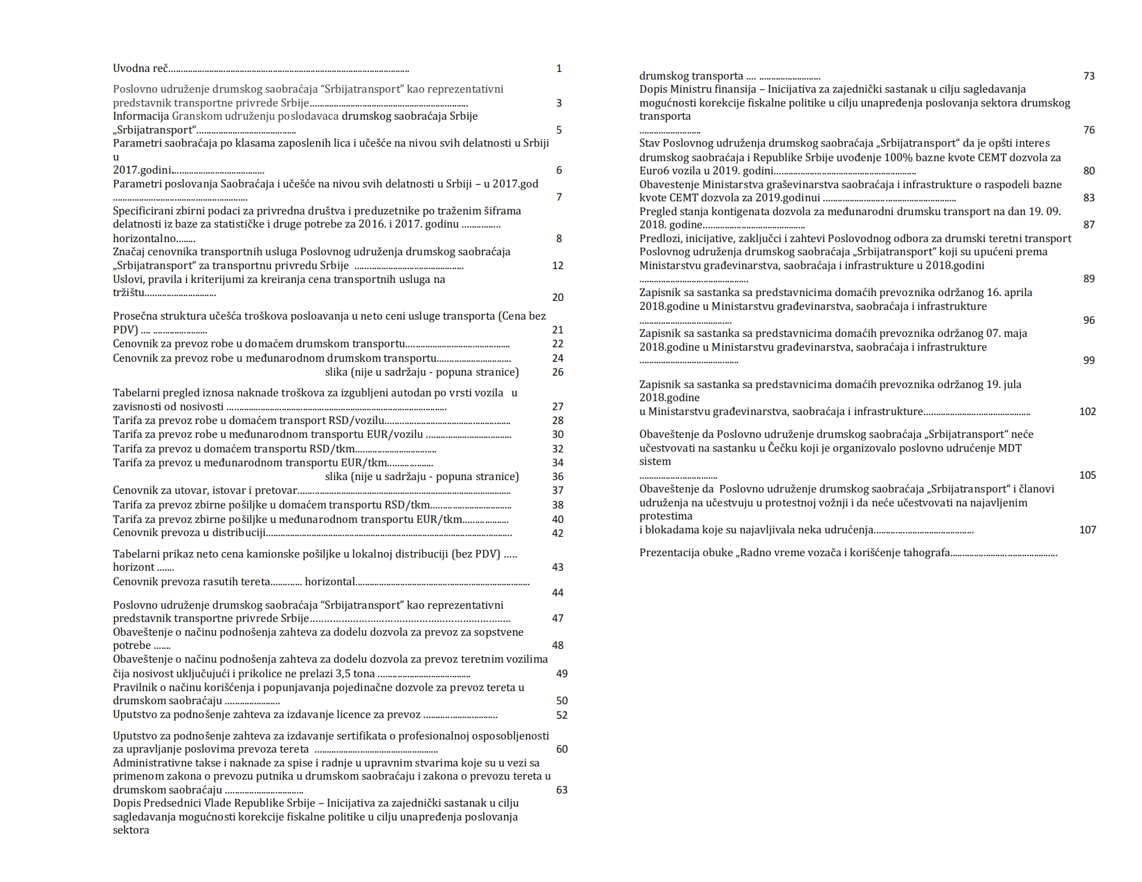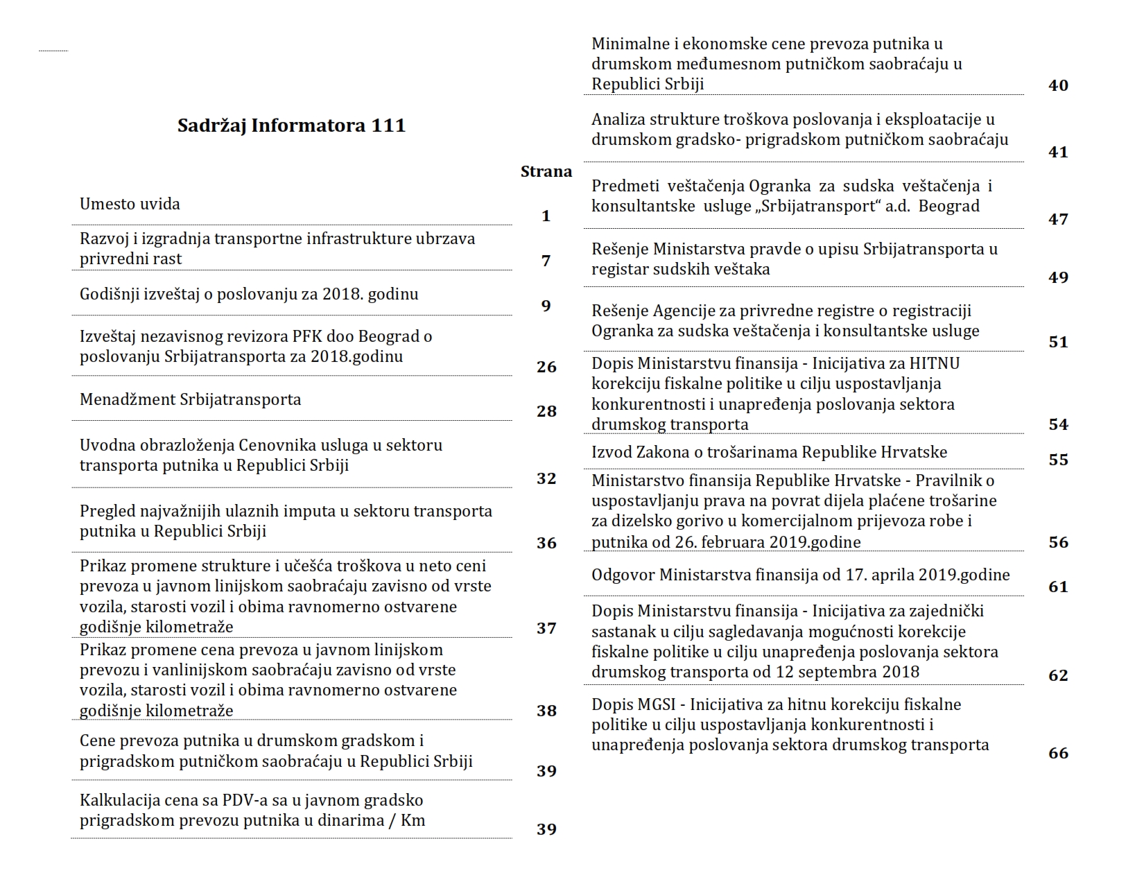 Srbijatransport izdaje Informator sa reprezentativnim cenovnikom